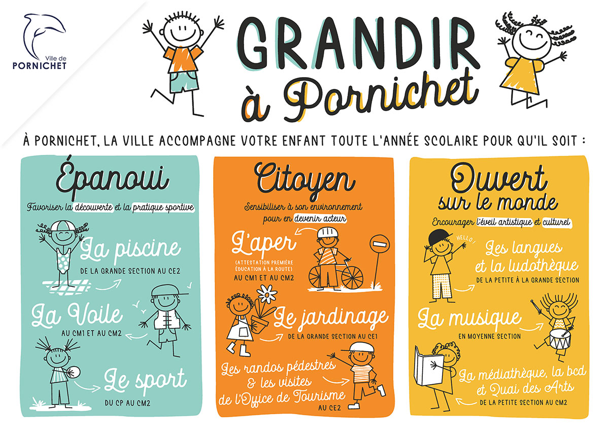 Au cours de l’année scolaire, la Ville de Pornichet propose un large éventail d’activités aux élèves des écoles primaires publiques et privées : voile, anglais, sécurité routière, jardinage, spectacle…